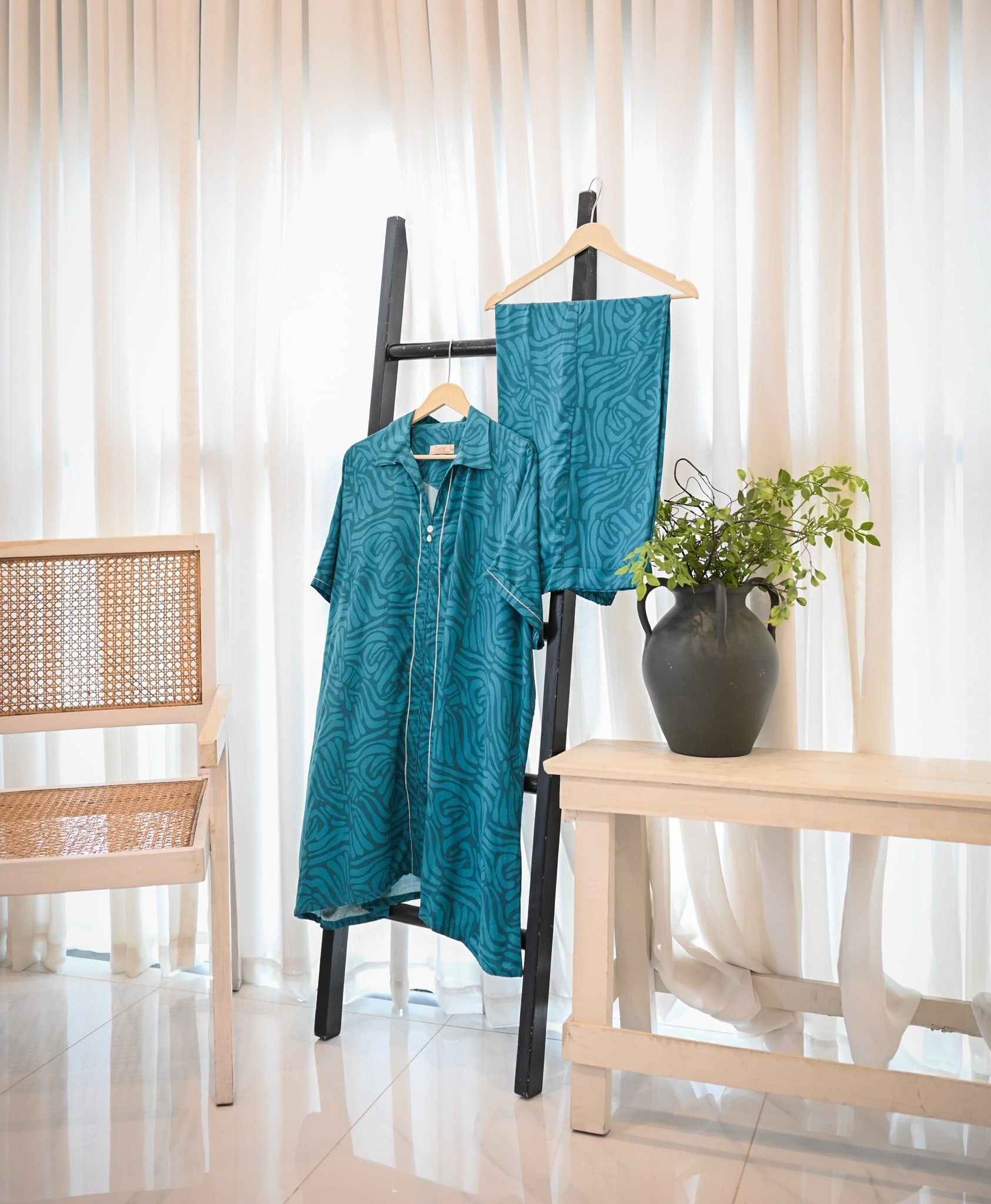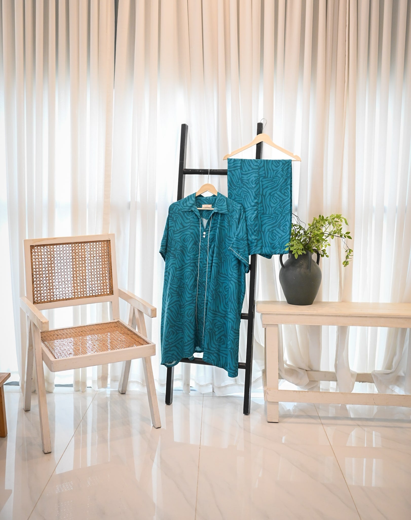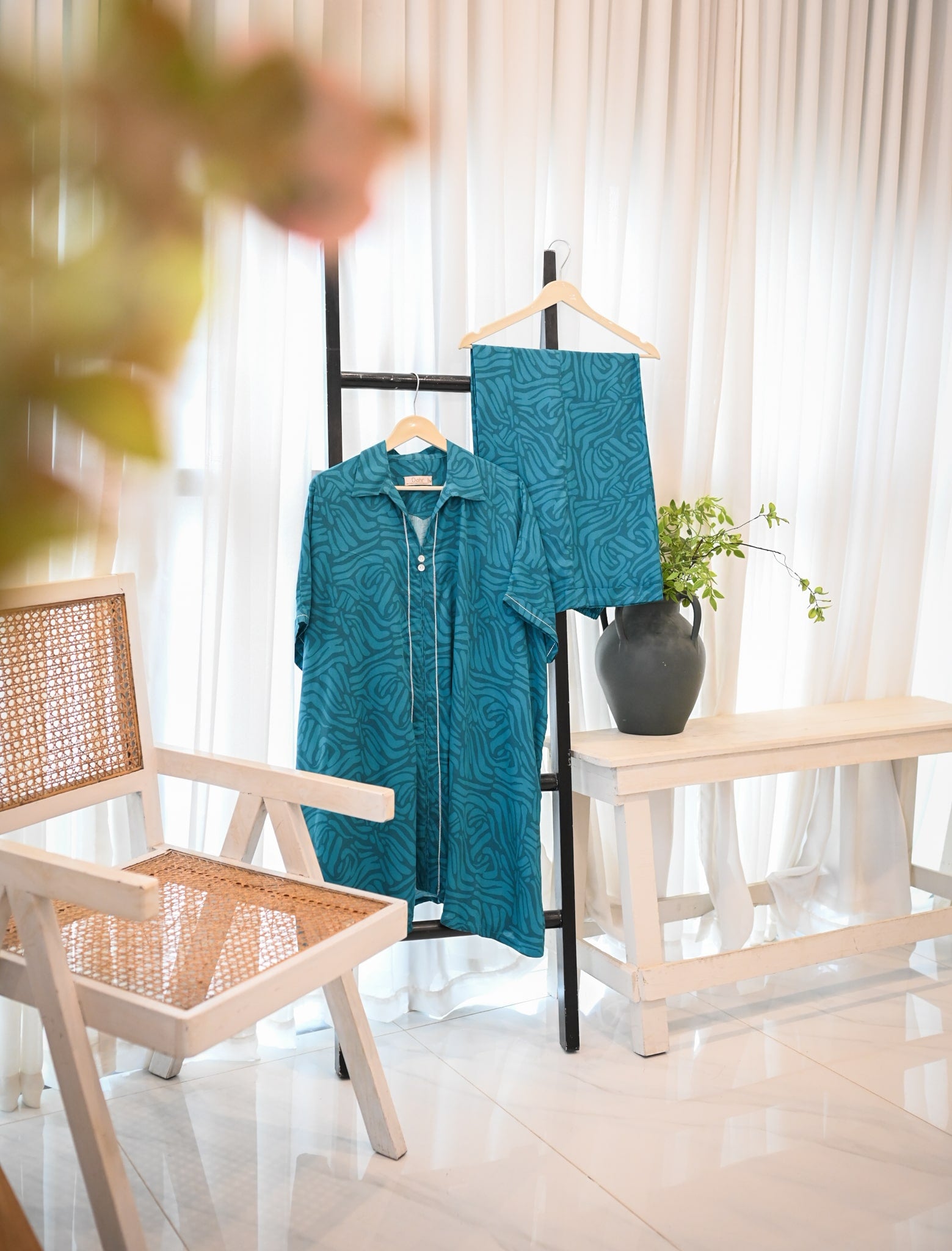 Elevate your casual wear with this stylish teal two-piece lounge set, designed for both