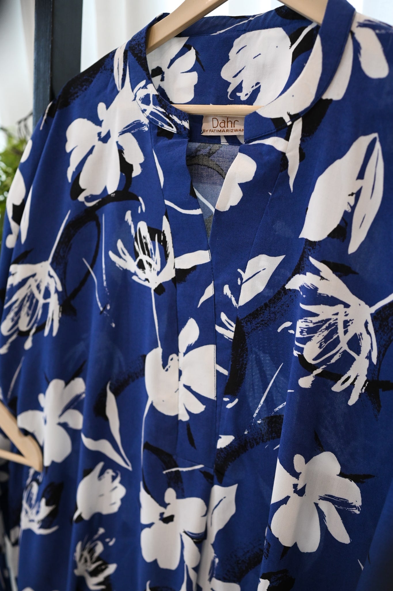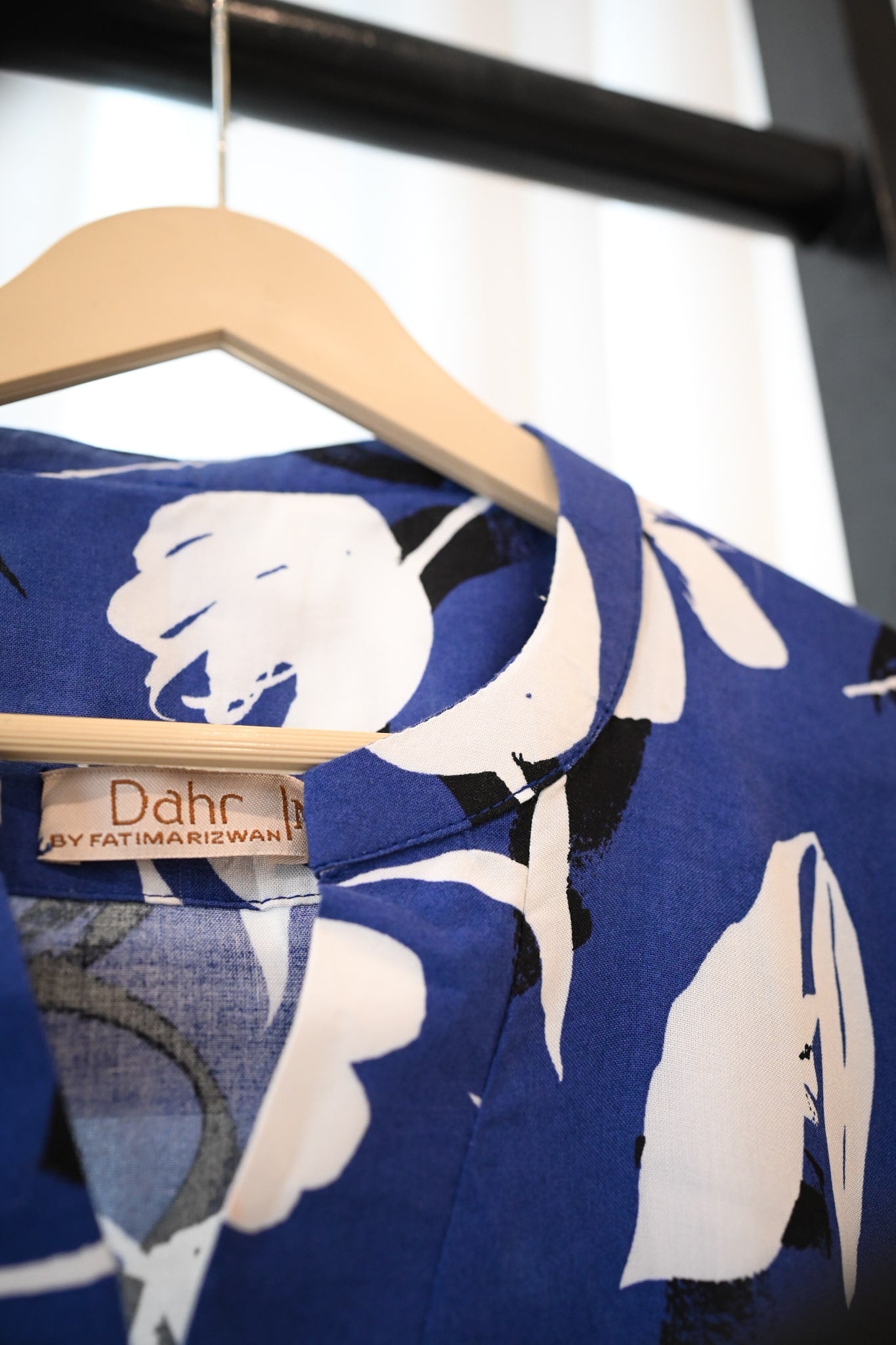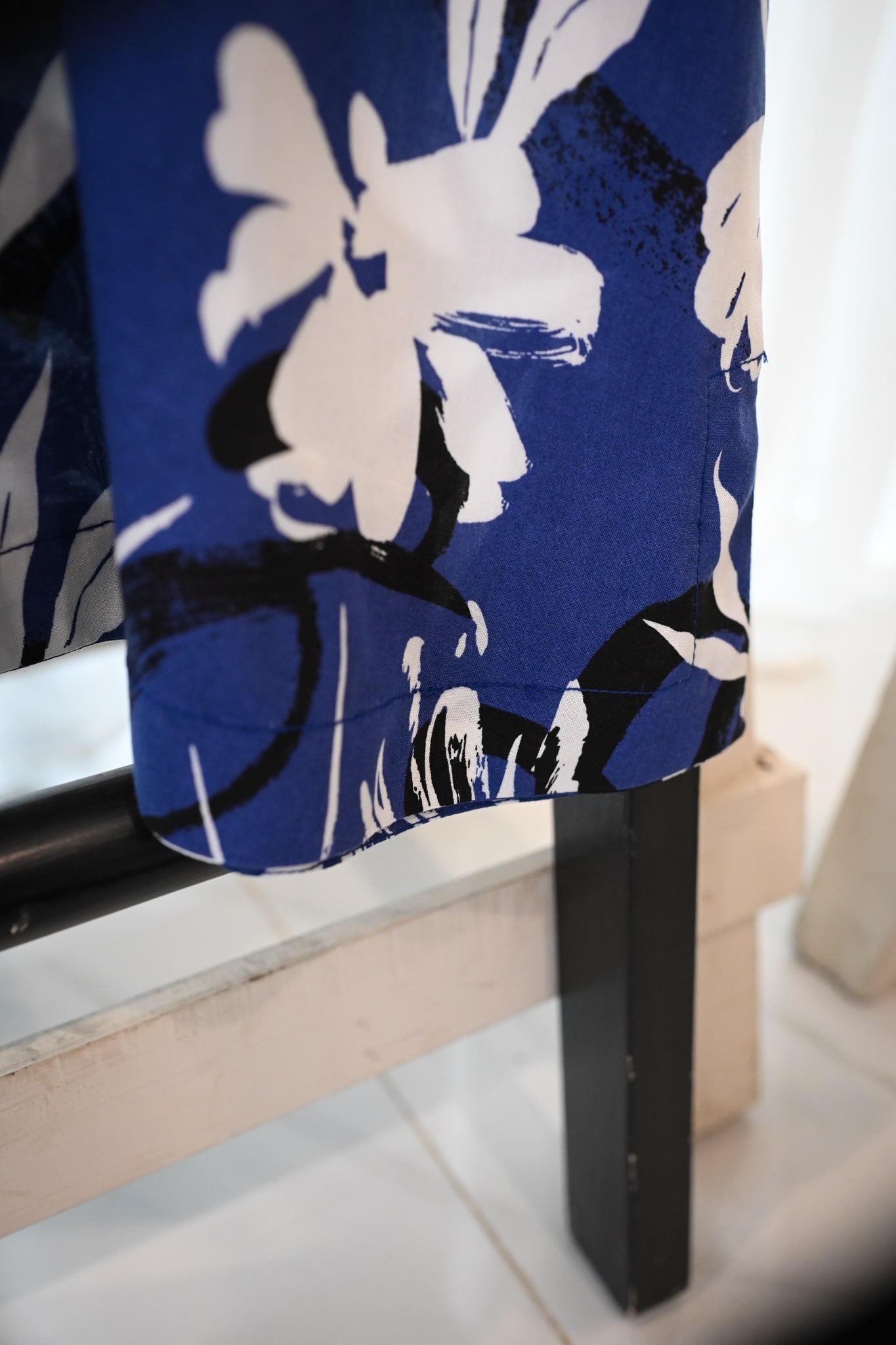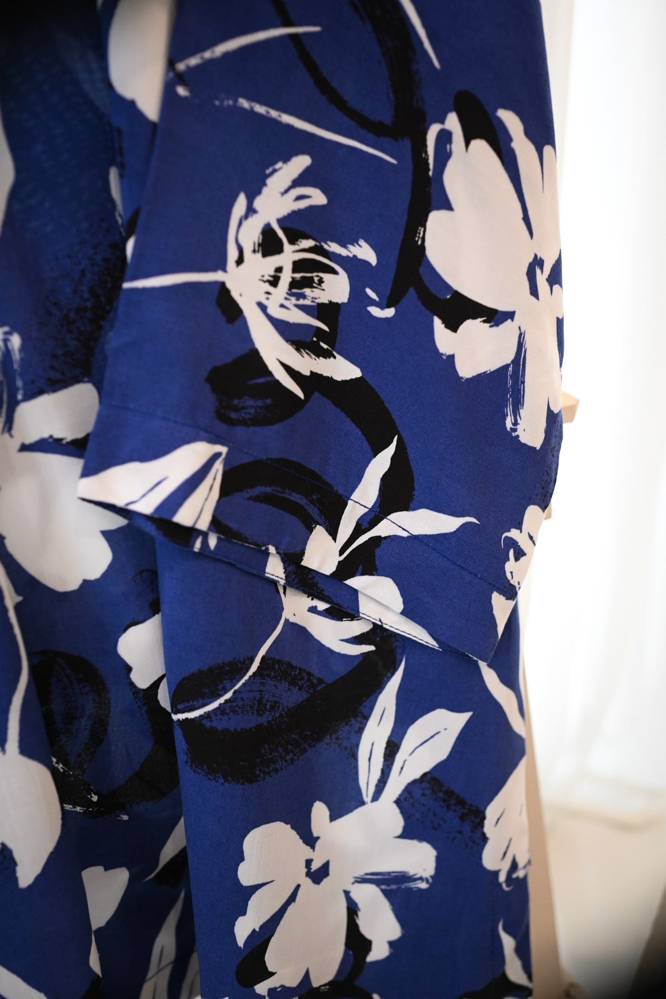 Top: Features a subtle V-neckline with laid down neckline collar, dropped shoulders and loose sleeves add to the casual, flowy look.